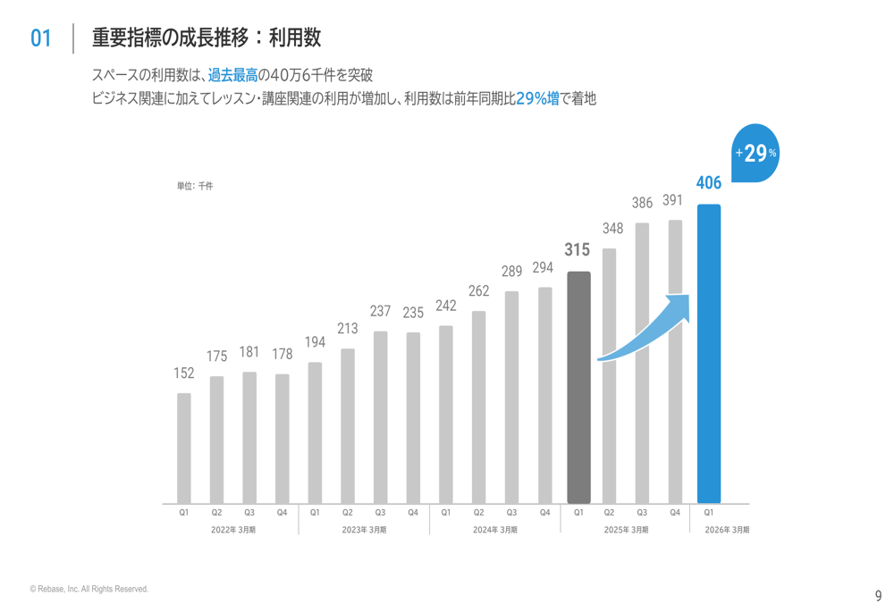 Despite the profit decline, Rebase demonstrated strong performance in key operational metrics. The number of users reached an all-time high of 406,000, representing a 29% year-over-year increase. This growth was attributed to increased usage related to lessons, workshops, and business activities.