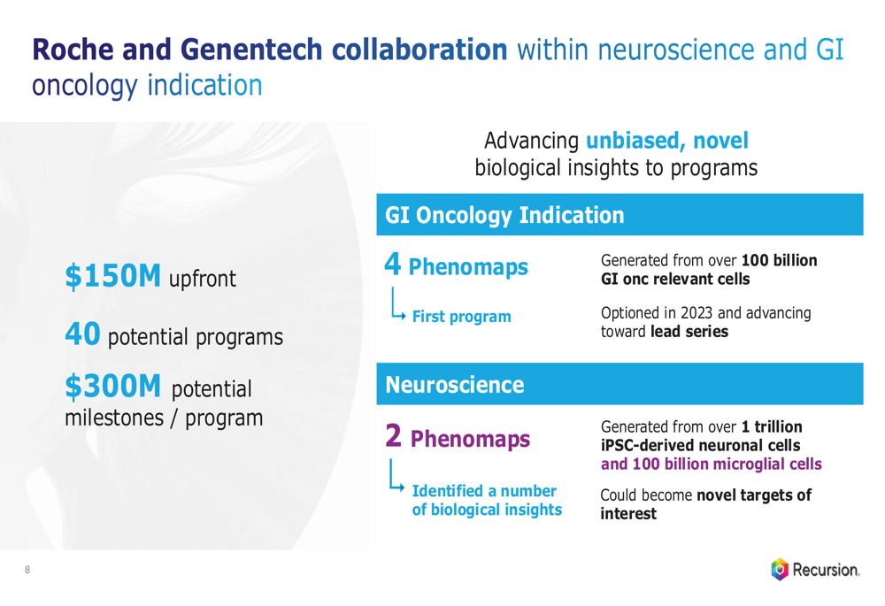 The collaboration with Roche and Genentech remains a cornerstone of Recursion’s strategy, spanning neuroscience and GI oncology indications:
