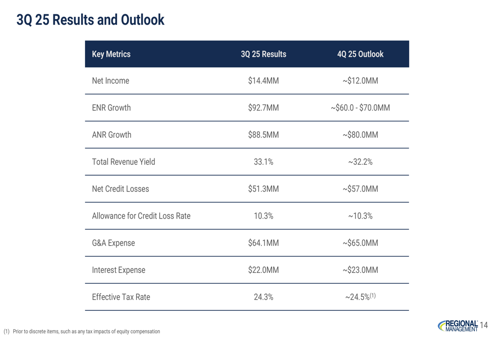 For Q4 2025, Regional Management provided the following outlook: