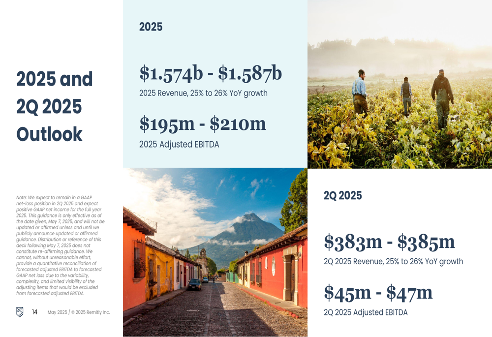 CFO Vikas Mehta provided an optimistic outlook for both Q2 and full-year 2025. For the second quarter, Remitly expects revenue between $383-385 million, representing 25-26% year-over-year growth, and adjusted EBITDA of $45-47 million.