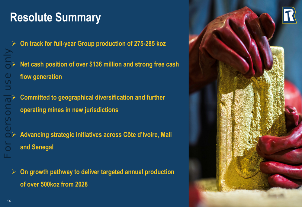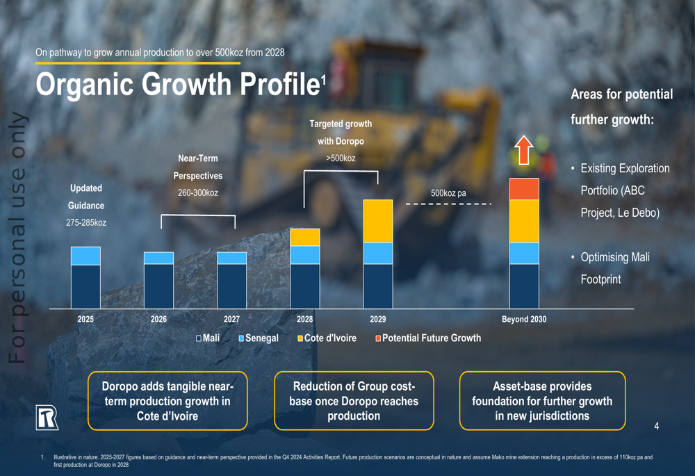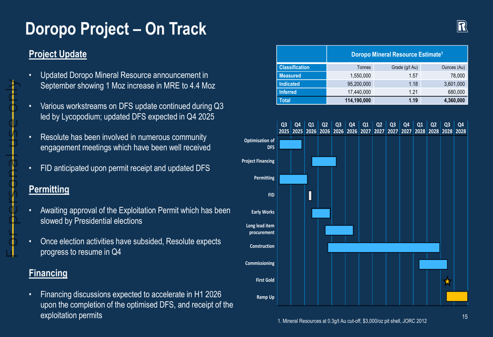 Resolute’s presentation emphasized its organic growth strategy, outlining a clear pathway to increase annual gold production to over 500,000 ounces by 2028. This growth trajectory is built on several key projects across its portfolio.