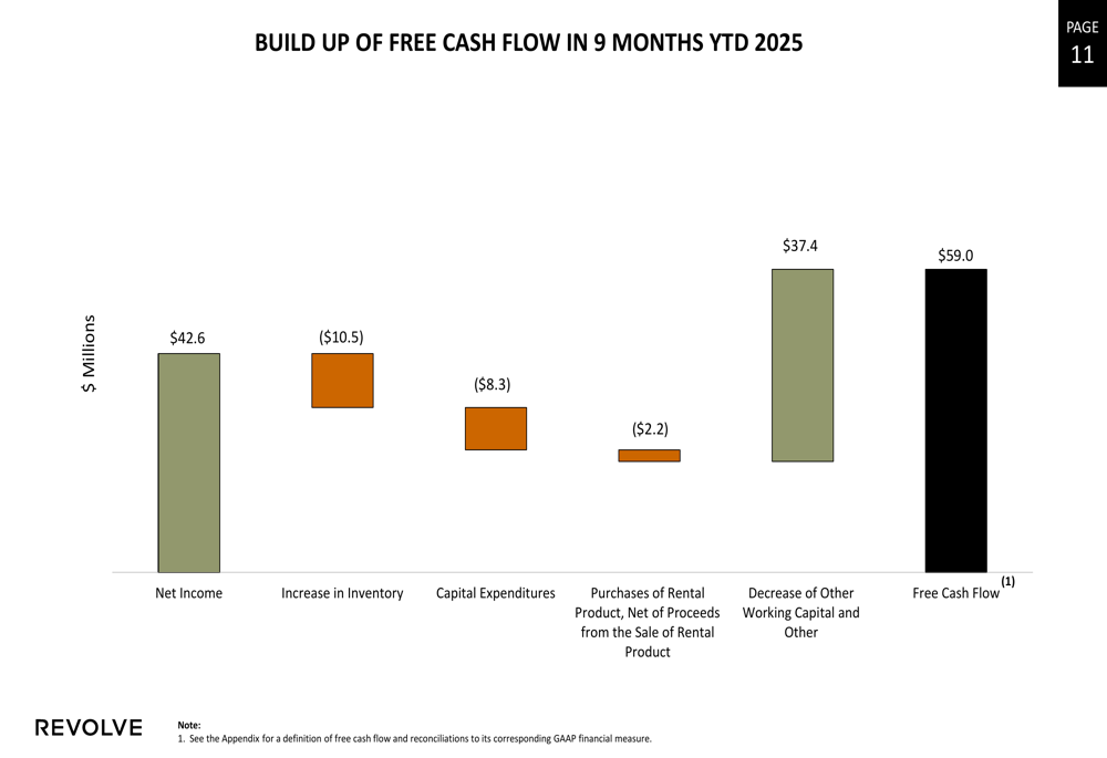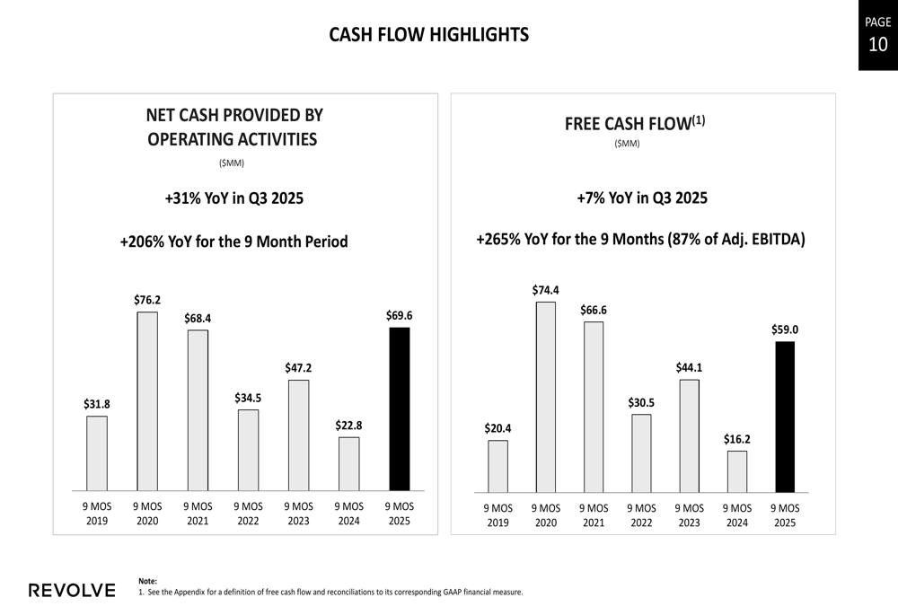 Revolve demonstrated exceptional cash generation capabilities in Q3 2025, with significant improvements in both operating cash flow and free cash flow: