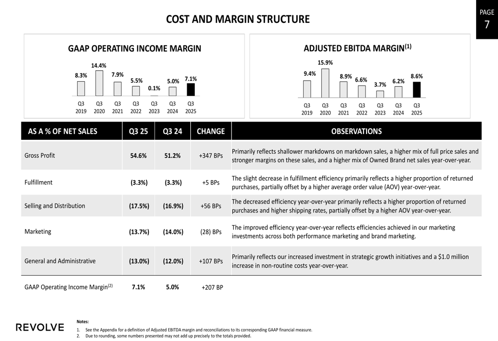 The most impressive aspect of Revolve’s Q3 performance was its significant margin expansion. The company’s detailed cost and margin structure reveals substantial improvements in gross profit margin, which was partially offset by increases in certain operating expenses: