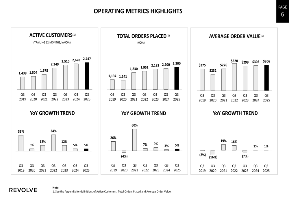 These engagement metrics suggest that Revolve is successfully attracting and retaining customers despite a challenging retail environment, though the modest growth in average order value indicates some pricing pressure.