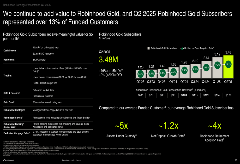 The following chart highlights the value proposition and growth of Robinhood Gold: