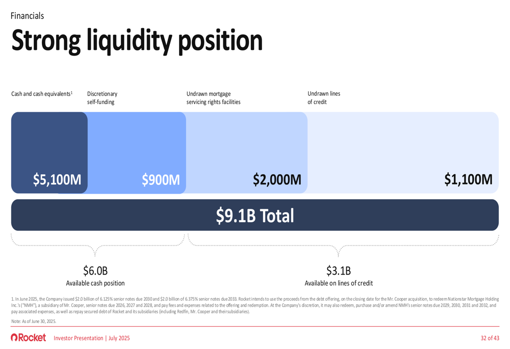 Rocket highlighted its strong liquidity position, totaling $9.1 billion, which provides flexibility for acquisitions and investments: