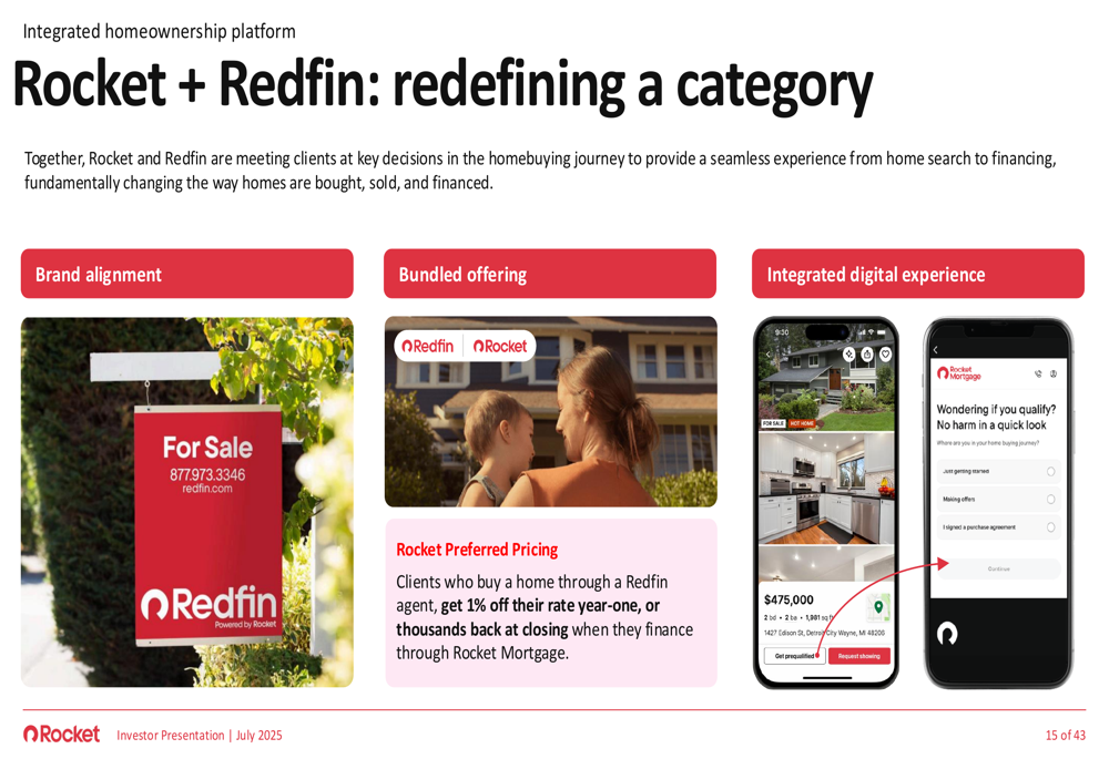A central theme of Rocket’s presentation was its acquisition strategy, particularly the integration of Redfin to create a comprehensive homeownership platform. The company positioned the combination as transformative for the industry, bringing together Rocket’s mortgage expertise with Redfin’s real estate platform.