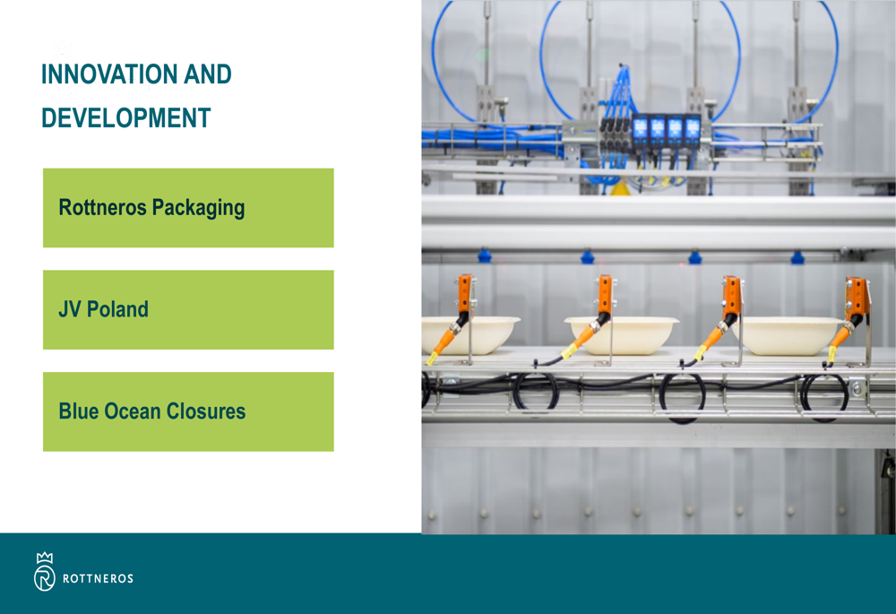 The company is pursuing innovation and development initiatives to capitalize on these trends, including Rottneros Packaging, a joint venture in Poland, and Blue Ocean Closures: