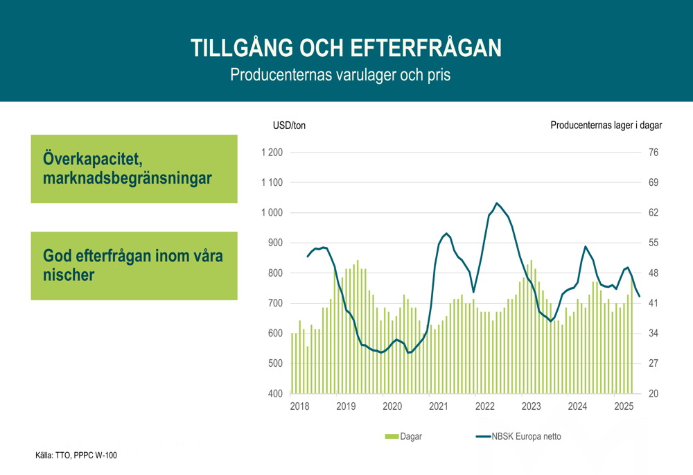 The presentation highlighted a market environment with considerable uncertainty regarding exchange rates and tariffs, particularly relevant given the recent 15% U.S. tariff on imports mentioned in analyst discussions. Despite these headwinds, Rottneros noted "good demand in our niches" even as broader market conditions remain challenging.