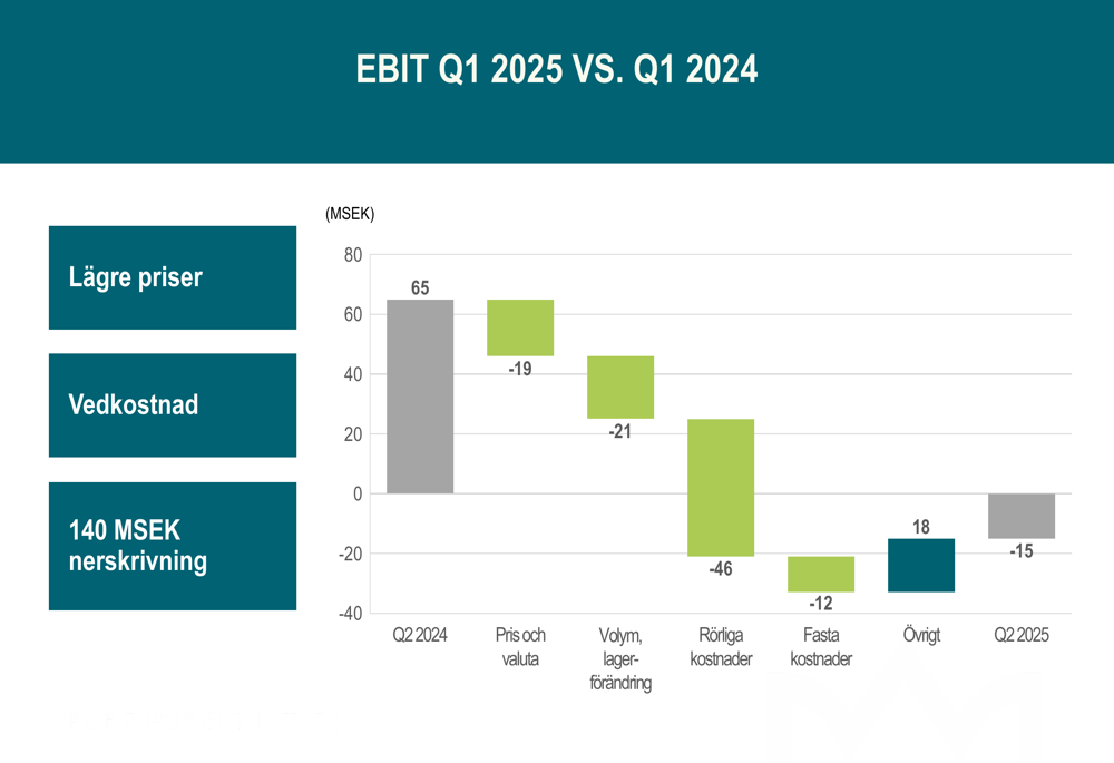 The company also reported an asset write-down of 140 MSEK for Rottneros Mill, briefly referenced in the presentation and detailed in recent earnings discussions.