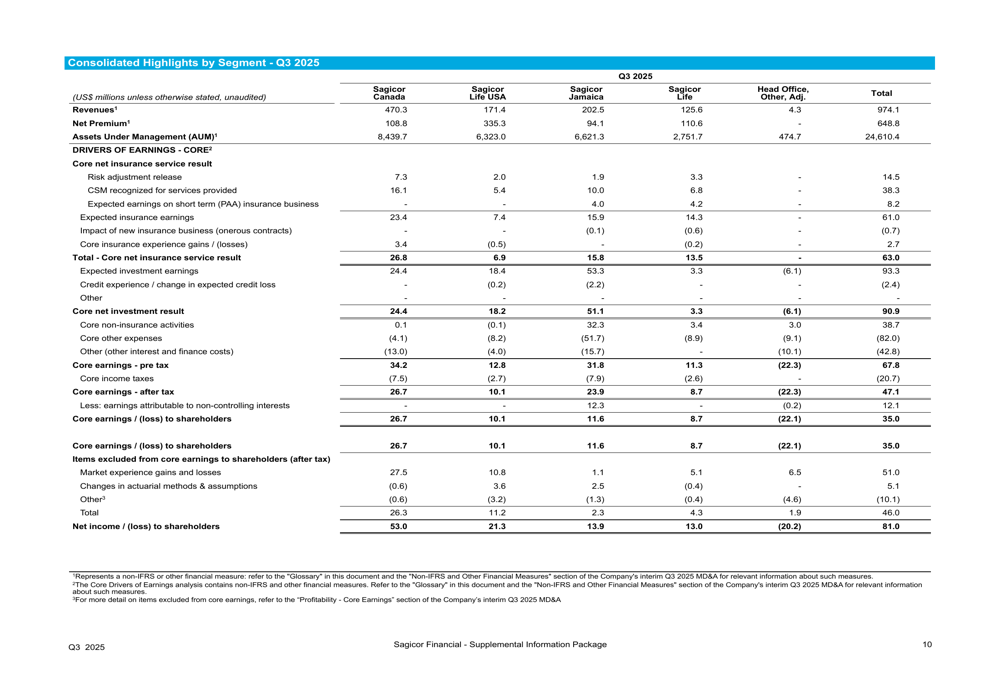 Sagicor's operations are divided into five main segments: Sagicor Canada, Sagicor Life USA, Sagicor Jamaica, Sagicor Life, and Head Office/Other. The Q3 2025 performance varied significantly across these segments, with Canada and the USA driving the strongest results.