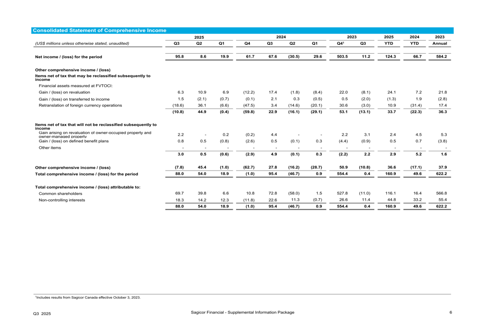 Sagicor Canada generated the highest revenues at $470.3 million, contributing $53.0 million to net income. Sagicor Life USA benefited from strong fixed annuity sales, generating $171.4 million in revenues and $21.3 million in net income. Sagicor Jamaica, despite facing challenges from Hurricane Melissa, delivered $202.5 million in revenues and $13.9 million in net income, demonstrating the effectiveness of the company's business continuity plans.