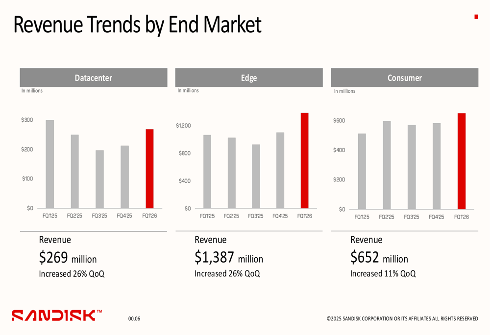 The presentation revealed strong performance across all three of SanDisk's end markets, with particularly robust growth in the datacenter and edge segments.