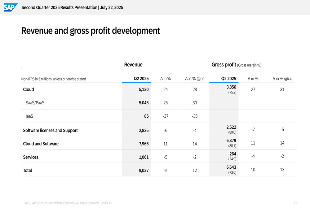 Cloud gross profit margins also improved significantly, reaching 75.2% on a non-IFRS basis, up from previous quarters. This margin expansion demonstrates SAP’s ability to scale its cloud operations efficiently while maintaining pricing discipline.