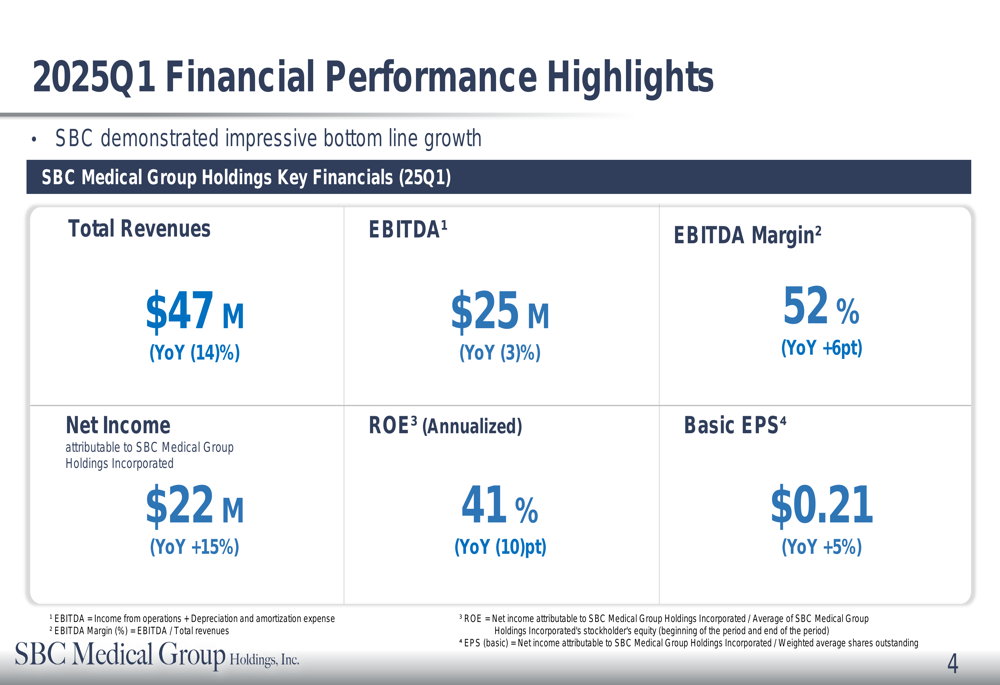 Despite the revenue decline, net income attributable to SBC Medical increased by 15% year-over-year to $22 million, while basic earnings per share rose 5% to $0.21. The company also reported an EBITDA of $25 million with an improved margin of 52%, representing a 6 percentage point increase year-over-year.