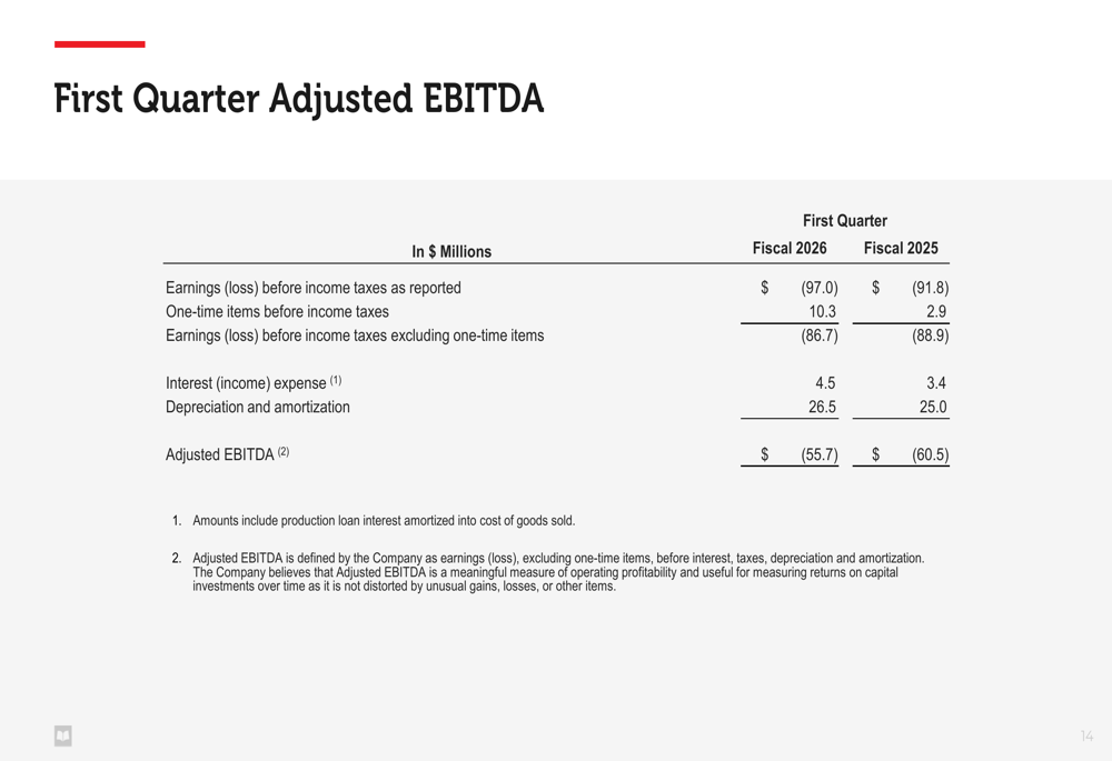 Diluted loss per share increased to $(2.83) from $(2.21) in the prior-year period, representing a 28% decline. However, when excluding one-time items, the adjusted loss per share was $(2.52), compared to $(2.13) in the first quarter of fiscal 2025.