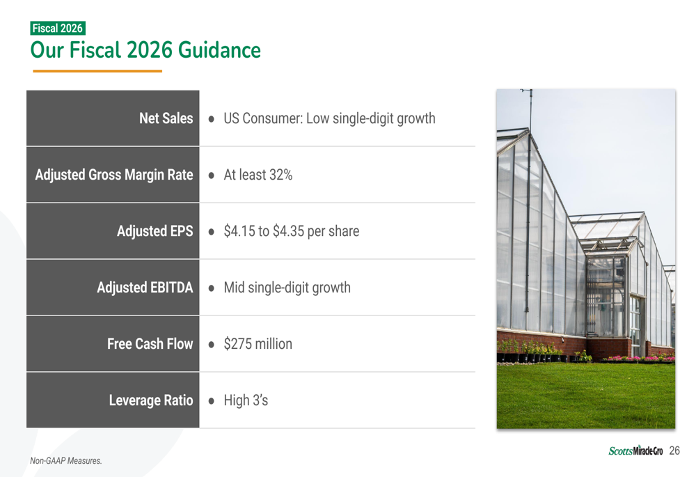 Looking ahead to fiscal 2026, Scotts Miracle-Gro provided optimistic guidance, expecting low single-digit growth in U.S. Consumer net sales and continued margin expansion: