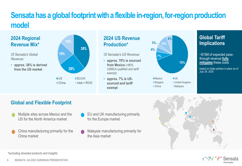 Sensata’s global manufacturing footprint provides strategic advantages in navigating trade policies and tariffs. The company derives approximately 38% of its global revenue from China, 19% from the US, 15% from EU/UK, and 28% from Asia and the rest of the world.