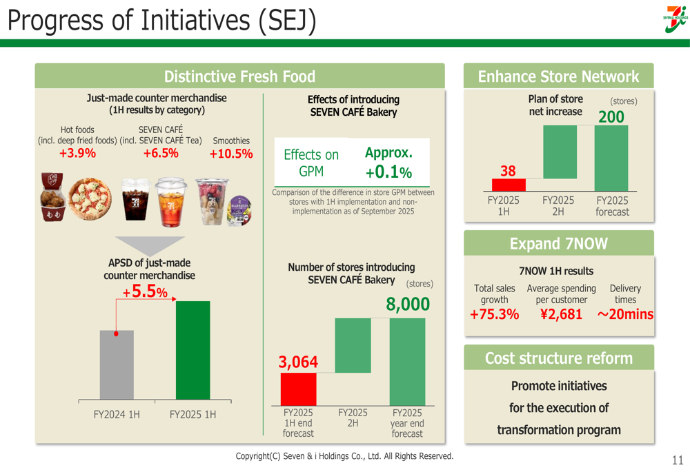 The company is also strengthening high-value-added merchandise with initiatives like "Umasa-Aimori" and "Oyogase-men," while expanding SEVEN CAFÉ Bakery to 817 additional stores and SEVEN CAFÉ Tea to 776 more locations.