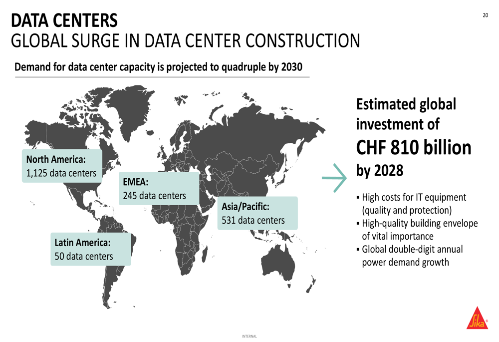 The company is particularly focused on capitalizing on the global surge in data center construction, with an estimated global investment of CHF 810 billion by 2028. The demand for data center capacity is projected to quadruple by 2030, presenting a significant growth opportunity for Sika’s specialized construction solutions.