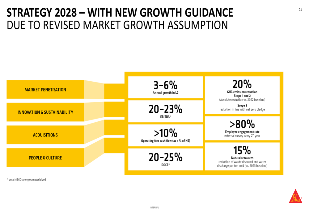 Sika continues to target an EBITDA margin of over 20% starting in 2026, as outlined in its Strategy 2028:
