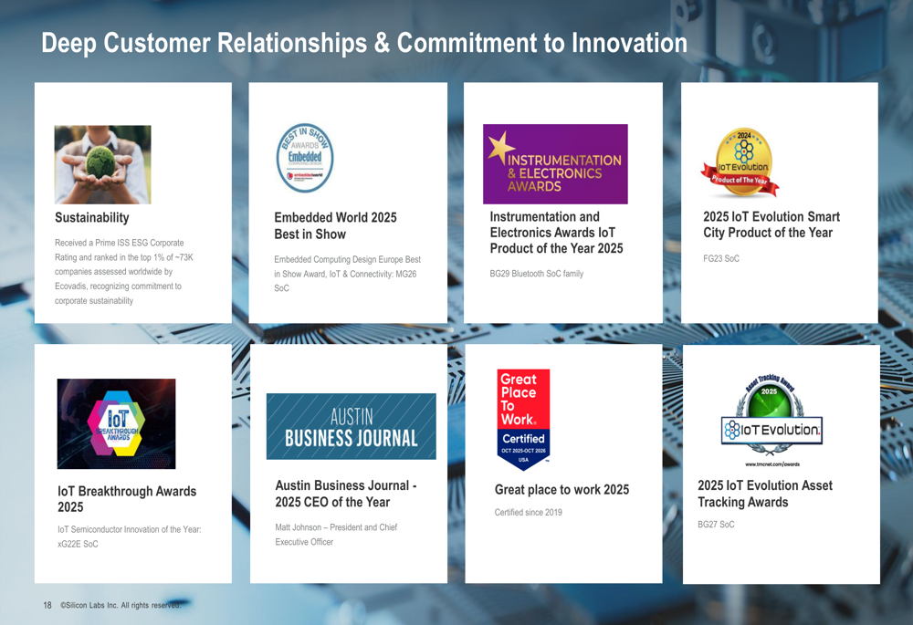 Silicon Labs' industry leadership is further validated by numerous awards and recognitions received in 2025: