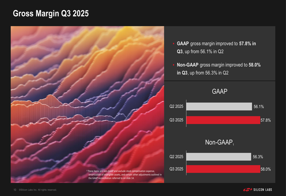 The company also achieved substantial margin expansion, with non-GAAP gross margin improving to 58.0% in Q3 from 56.3% in Q2, a 170 basis point increase. GAAP gross margin similarly improved to 57.8% from 56.1% quarter-over-quarter.