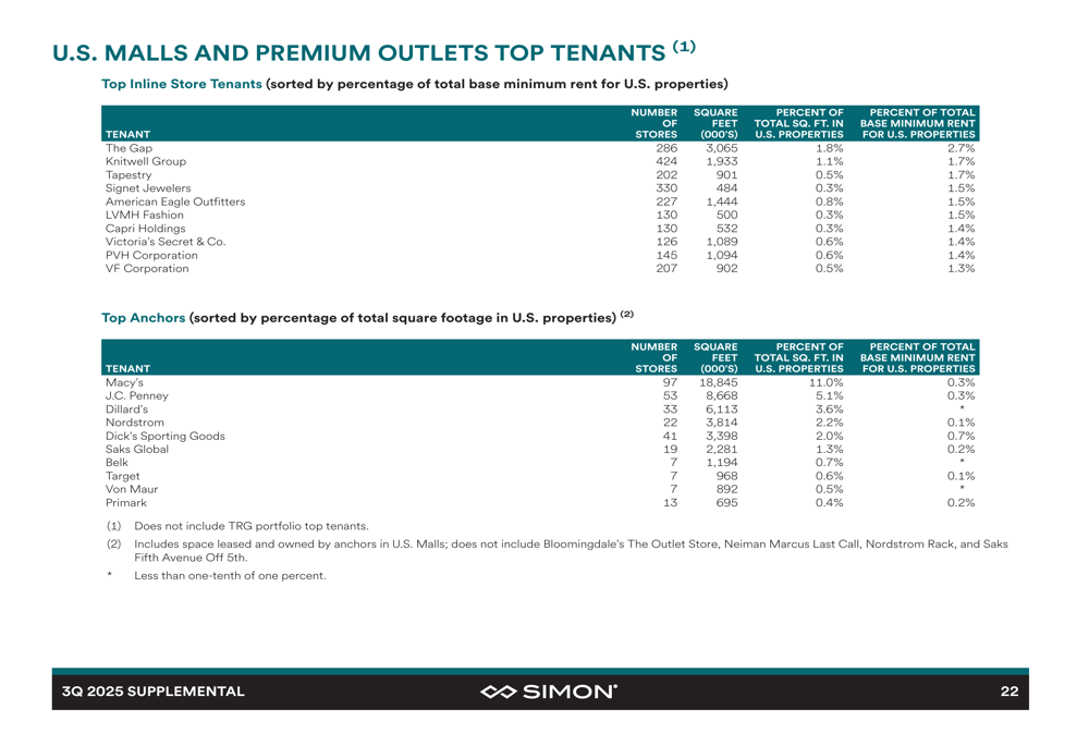 Simon's portfolio continues to demonstrate strong occupancy rates, with U.S. Malls and Premium Outlets reaching 96.4% occupancy as of September 30, 2025. This high occupancy rate reflects the company's ability to attract and retain tenants despite ongoing evolution in the retail landscape.
