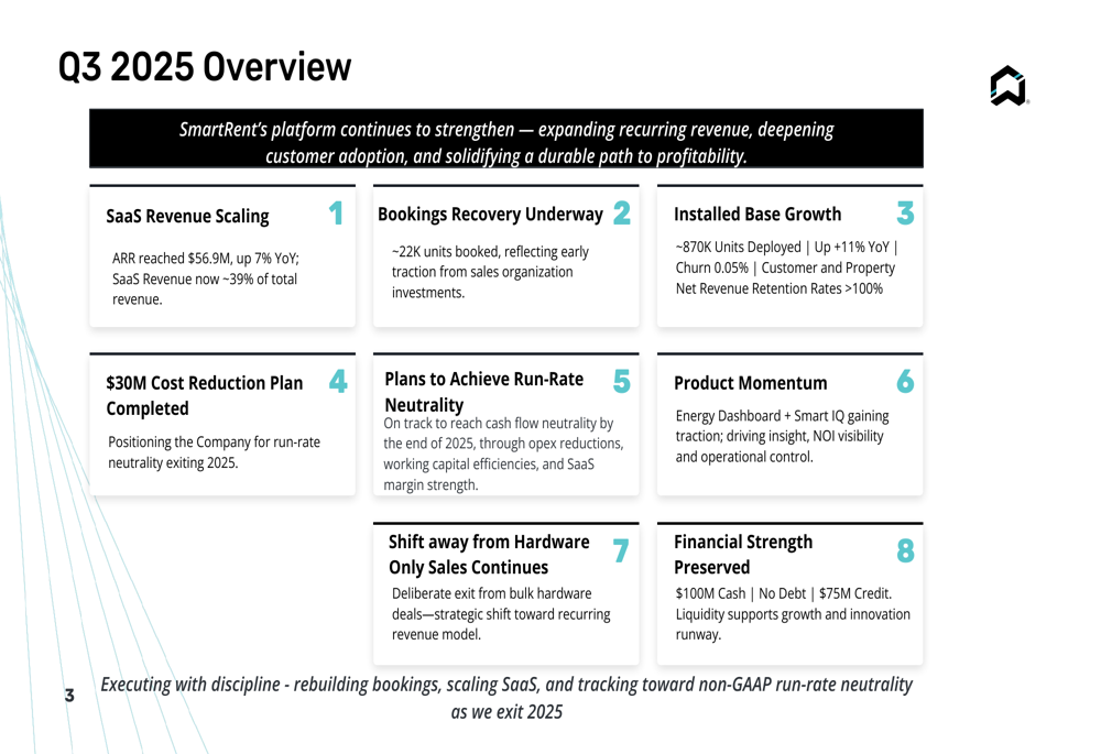 SmartRent’s comprehensive overview of Q3 2025 highlights both financial performance and strategic progress:
