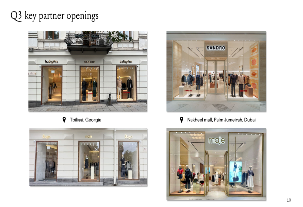 The company expanded its network by 9 points of sale in Q3, primarily through partnerships in key markets such as the Middle East, Egypt, and the Balkans. SMCP also entered a new market with its expansion into Georgia.