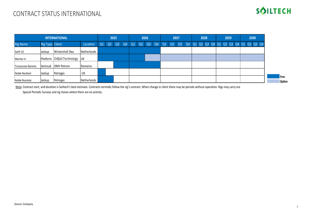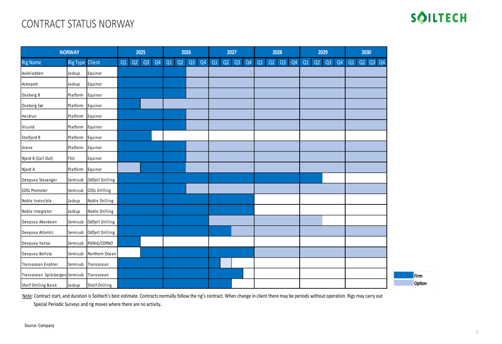 The contract status in Norway shows several long-term agreements extending into 2026 and beyond, providing a stable foundation for continued growth: