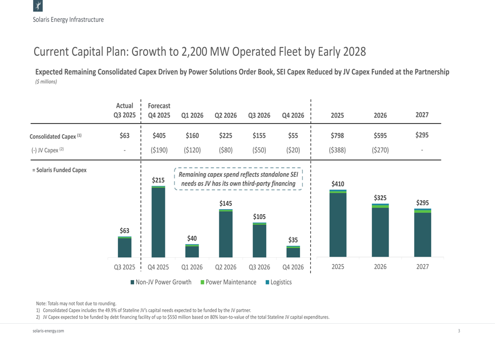 SEI reported Q3 2025 Adjusted EBITDA of $68 million, representing a 12% increase from the previous quarter and threefold growth year-over-year. This performance was driven by the company's expanding power generation fleet, which averaged 760 MW during Q3, a 27% increase from the prior quarter.