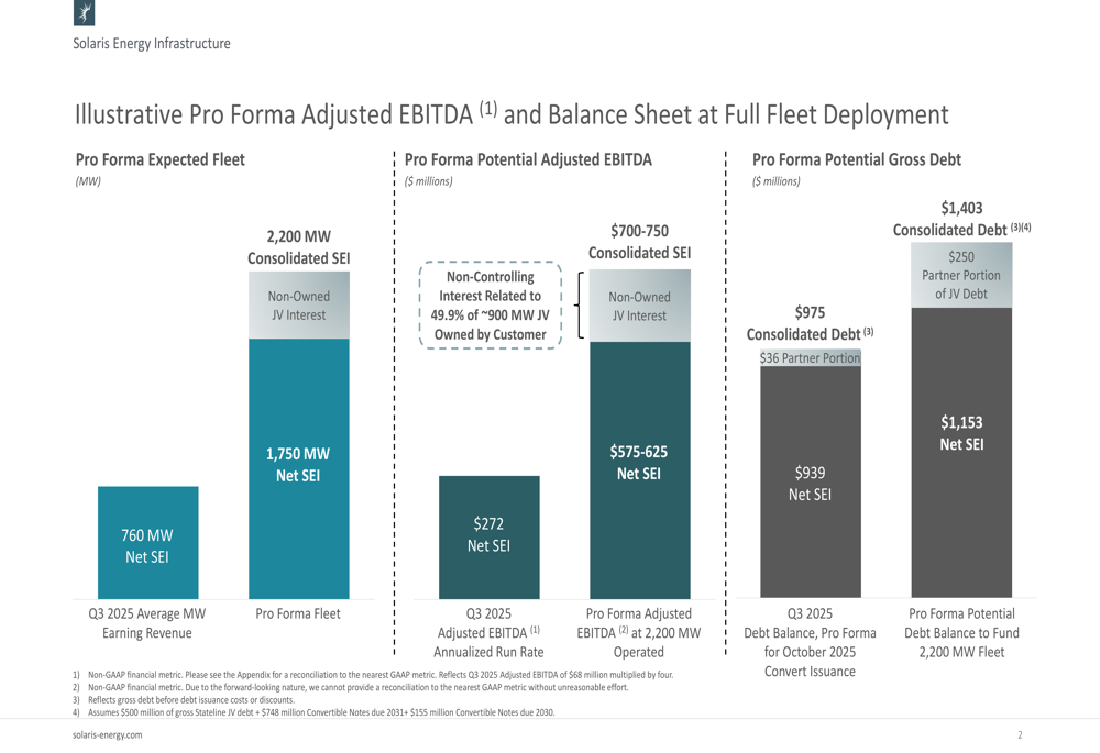 Looking beyond the immediate quarters, SEI projects potential consolidated Adjusted EBITDA of $700-750 million once the full 2,200 MW fleet is deployed, with $575-625 million attributable to SEI after accounting for joint venture interests. This represents more than a doubling from the current annualized run rate of $272 million.