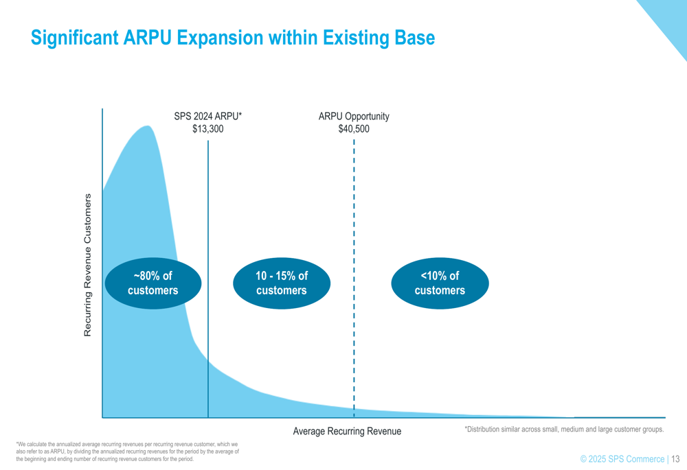 A significant growth opportunity exists in expanding ARPU within the existing customer base. According to the presentation, approximately 80% of customers are currently below the 2024 ARPU of $13,300, representing substantial room for expansion toward the opportunity ARPU of $40,500.