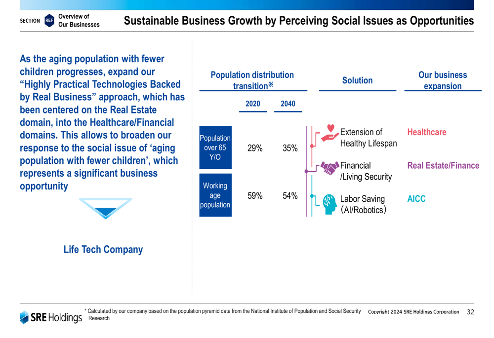 SRE Holdings’ strategy of addressing social issues, particularly Japan’s aging population, as business opportunities positions it well for sustainable long-term growth: