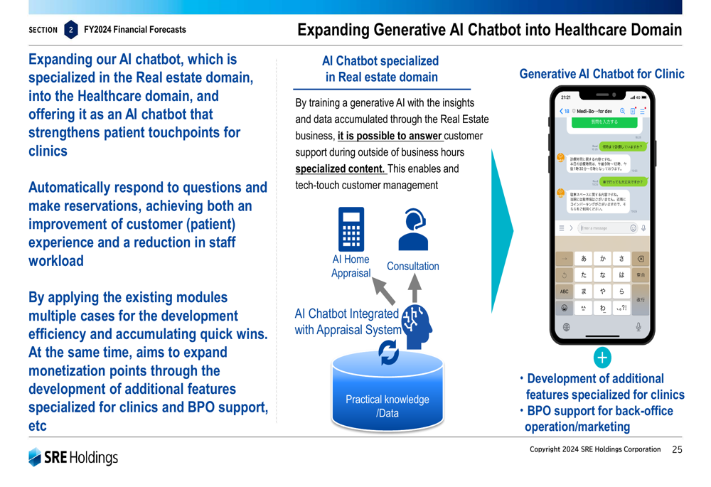 In April 2024, SRE Holdings acquired MEDIX Co., Ltd., a provider of cloud-based medical billing computers and support services for orthopedic clinics and acupuncture/moxibustion clinics. MEDIX brings a customer base of approximately 2,200 clinics, providing SRE Holdings with a solid foundation to expand its healthcare solutions.