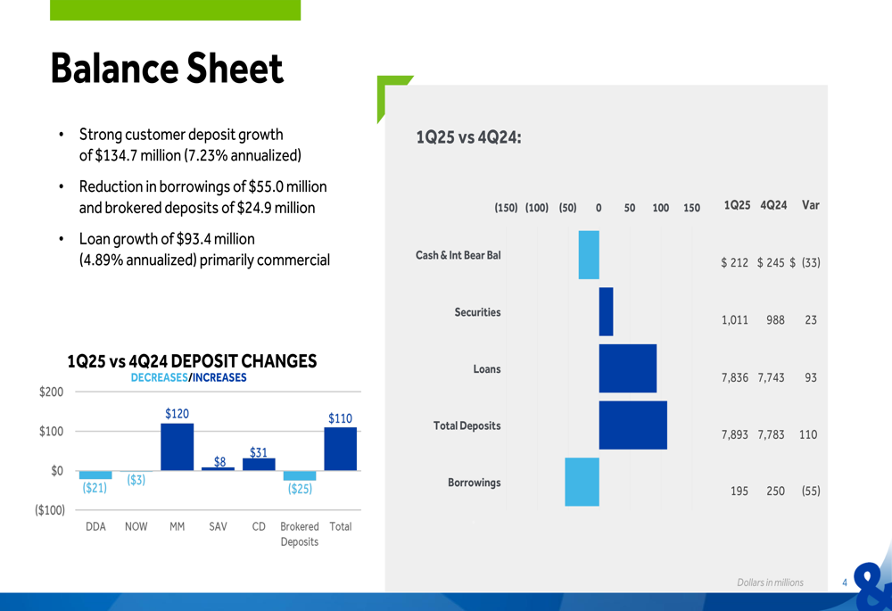 The bank’s strong capital position provides a solid foundation for continued organic growth and potentially for strategic opportunities. This aligns with management’s previous guidance from Q4 2024, which projected mid-single-digit loan growth in the first half of 2025 and high mid-single-digit growth for the full year.
