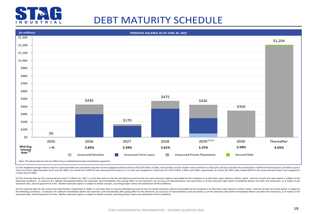 The following chart illustrates STAG’s debt maturity profile: