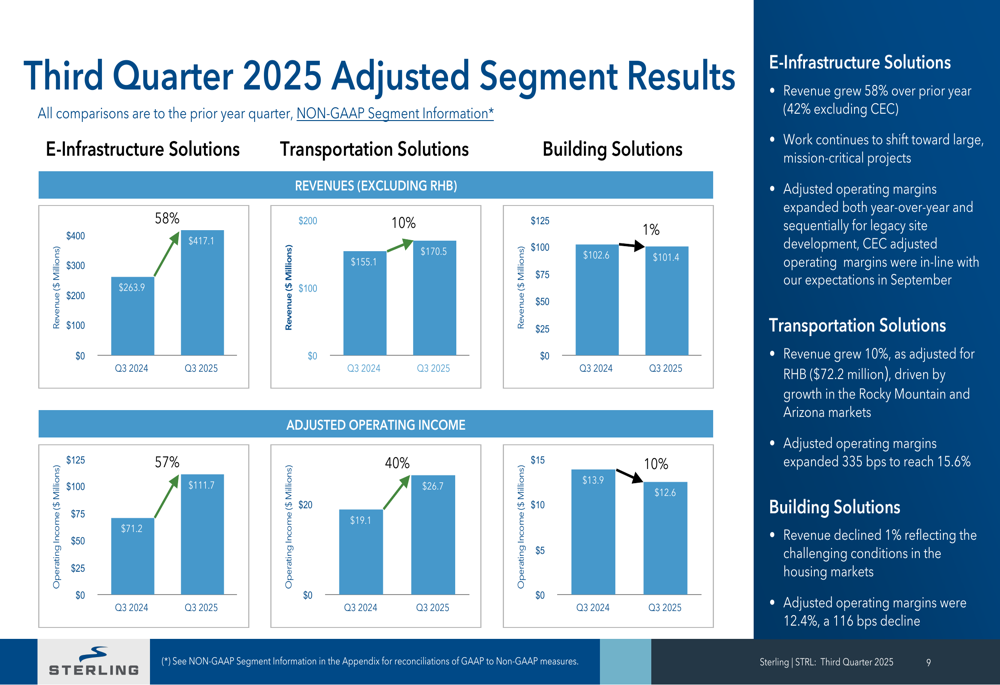 The following chart breaks down Sterling’s segment performance for Q3 2025: