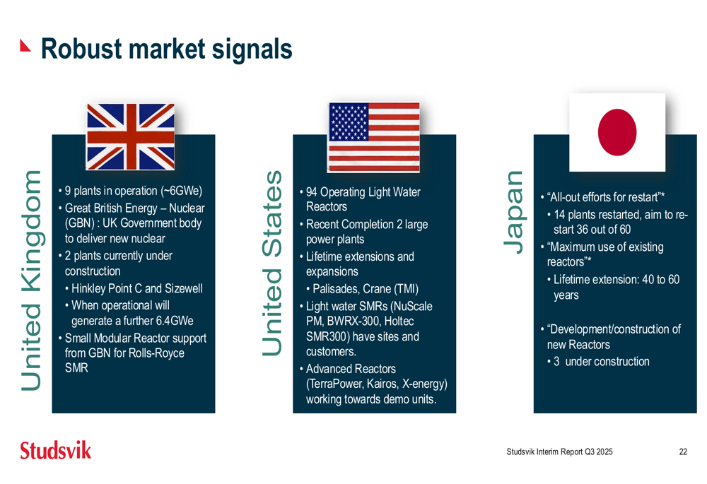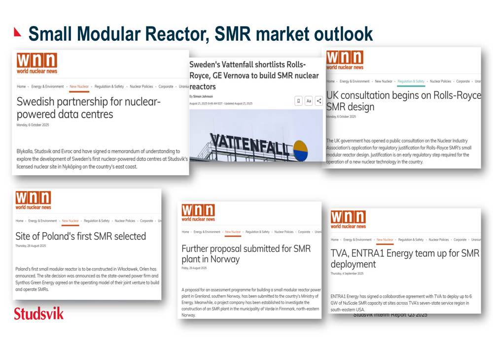 Particularly notable is Studsvik's focus on the Small Modular Reactor (SMR) market, which is gaining momentum globally as illustrated by recent developments: