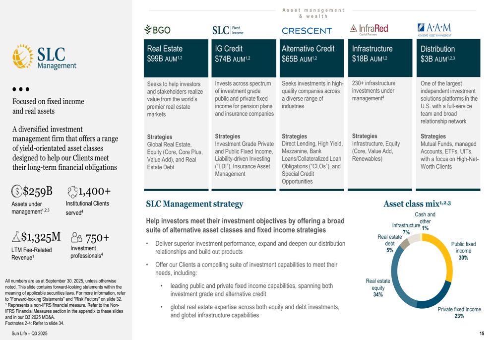 Meanwhile, SLC Management is growing as a premier alternatives platform with $259 billion in assets under management across real estate, infrastructure, and credit investments: