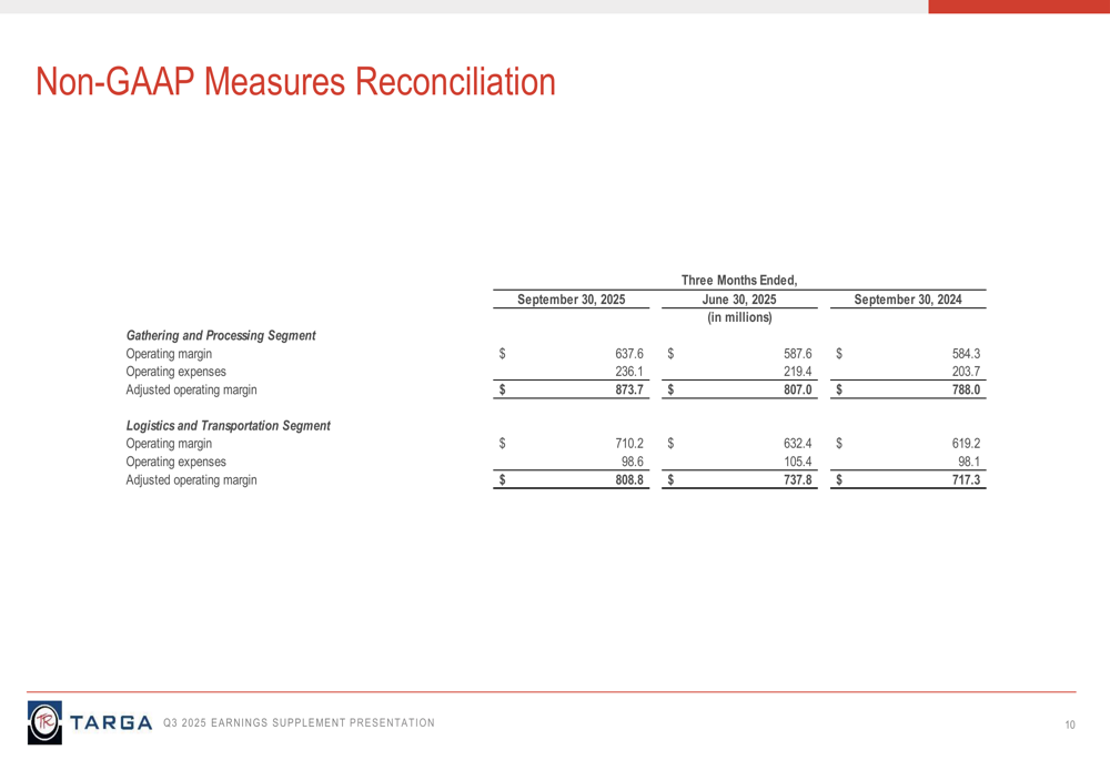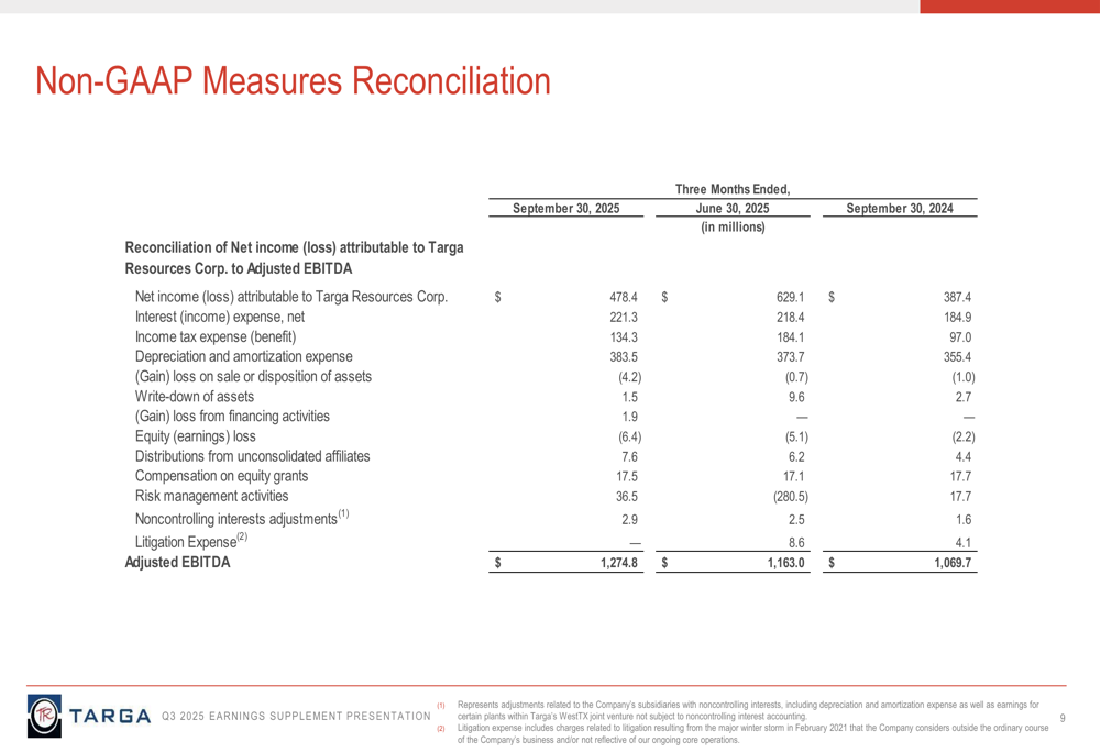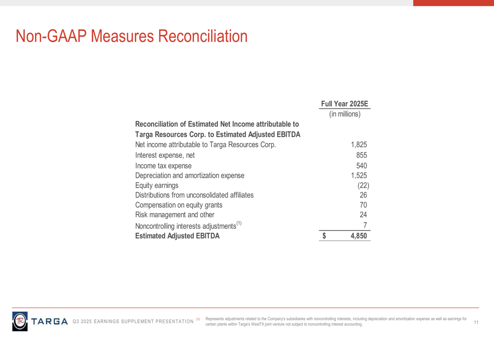 The reconciliation of these non-GAAP measures provides additional insight into Targa’s financial performance: