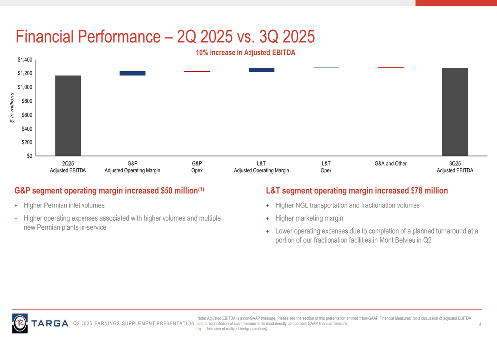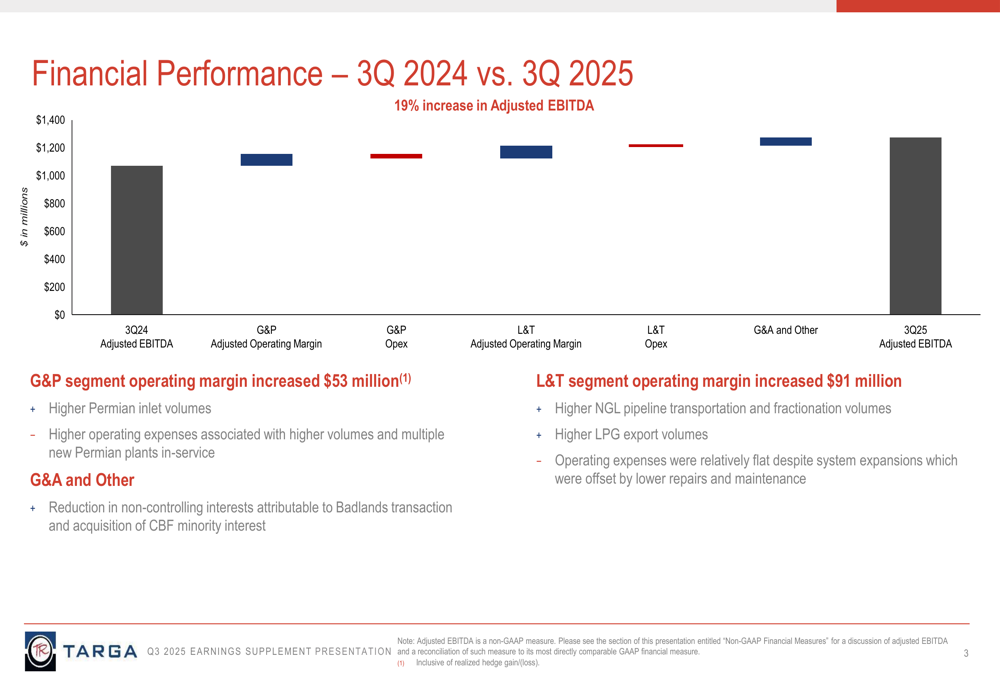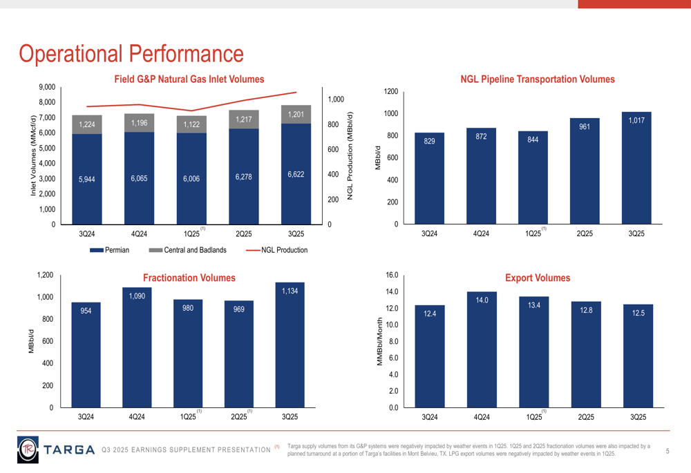 It’s worth noting that Targa’s supply volumes were negatively impacted by weather events in Q1 2025, and fractionation volumes were affected by planned turnarounds in Q1 and Q2 2025. Despite these challenges, the company has demonstrated strong recovery and growth in Q3.