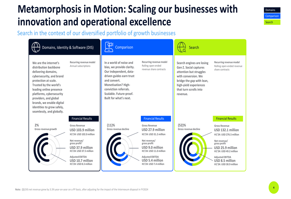 Team Internet operates through three business segments, each showing different performance trajectories: