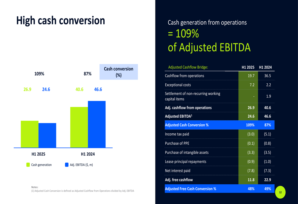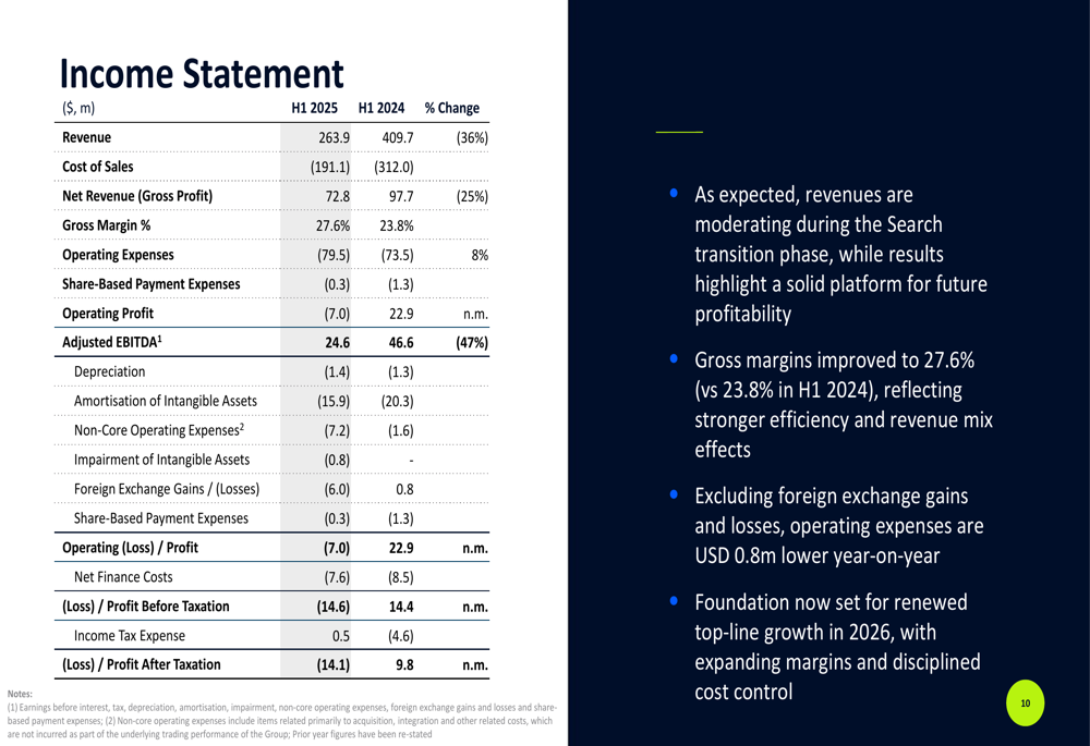 The income statement reveals the extent of the revenue and profit decline, though the company highlighted improved gross margins of 27.6% compared to 23.8% in H1 2024. Operating expenses decreased by $0.8 million year-on-year, excluding foreign exchange impacts.