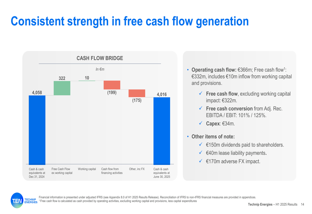 Technip Energies maintained a strong balance sheet with net cash exceeding €1.6 billion, up from over €1.4 billion at the end of 2024. This financial strength positions the company well for future growth opportunities and strategic investments.