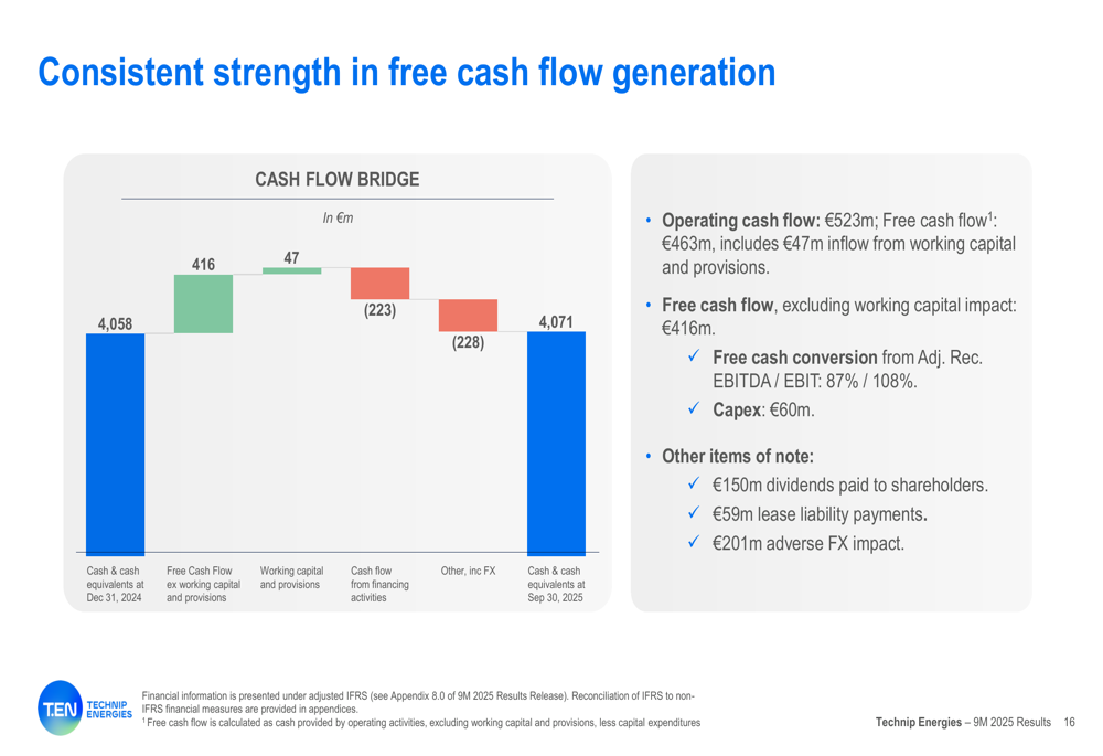 Technip Energies’ Q3 2025 presentation paints a picture of a company navigating a complex energy landscape with a diversified approach. While the quarterly results fell short of market expectations, leading to a significant stock price decline, the company’s overall nine-month performance showed solid growth in key financial metrics.