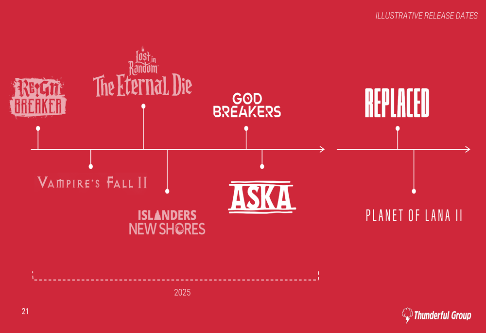 The following timeline illustrates Thunderful’s upcoming game releases, which the company hopes will improve its financial position: