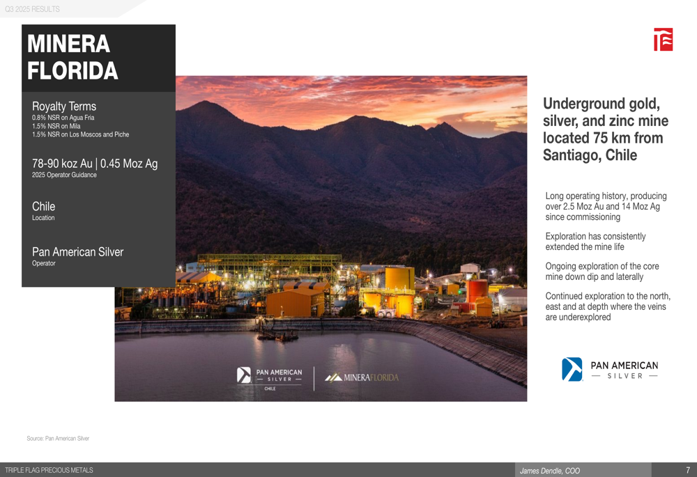Triple Flag has been actively deploying capital to fuel future growth, with over $350 million invested year-to-date in 2025. A key recent transaction was the acquisition of a royalty package on the Minera Florida mine operated by Pan American Silver in Chile.
