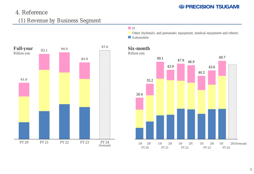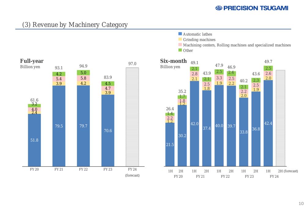 Based on the strong first-half performance, Tsugami has revised its full-year outlook upward. The company now forecasts revenue of 97.0 billion yen for FY2024, representing a 15.6% increase year-over-year and 7.8% above its previous outlook of 90.0 billion yen.